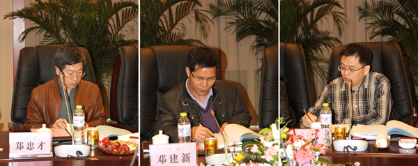 科技成果鑒定會主任委員鄧建新(中間)副主任委員鄭忠才、王強(qiáng)現(xiàn)場評議